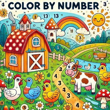 Engage young learners with this Color by Number activity book featuring adorable farm animals and vibrant farm scenes! Perfect for kids ages 3-7, this book encourages creativity while improving number recognition and fine motor skills.